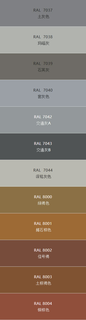 什么是RAL色卡?自從1927年,當RAL涉入色彩時(shí),就創(chuàng )建了一種統一的語(yǔ)言,為豐富多彩的顏色建立標準統計和命名,這些標準在世界范圍內被廣泛的理解和應用。 4位數的RAL顏色作為顏色標準已達70年之久,至今為止已發(fā)展到200多種。無(wú)光澤的顏色基礎色卡為RAL-840HR,有光澤的為841-GL,這些顏色基本色塊滿(mǎn)足了大范圍的應用,已被許多重要公司及研究機構所使用。RAL-840HR及RAL-841GL 顏色注冊都作為顏色樣本應用于設計中,同時(shí)它們也包括了安全和信號色符合DIN及ISO規定的顏色要求。